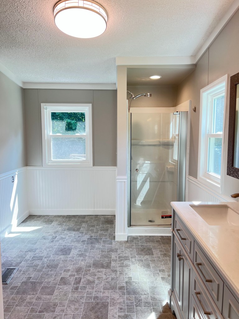 Fully sealed bathroom, no leaks, flawless walls, and long-lasting, moisture-resistant finishes.